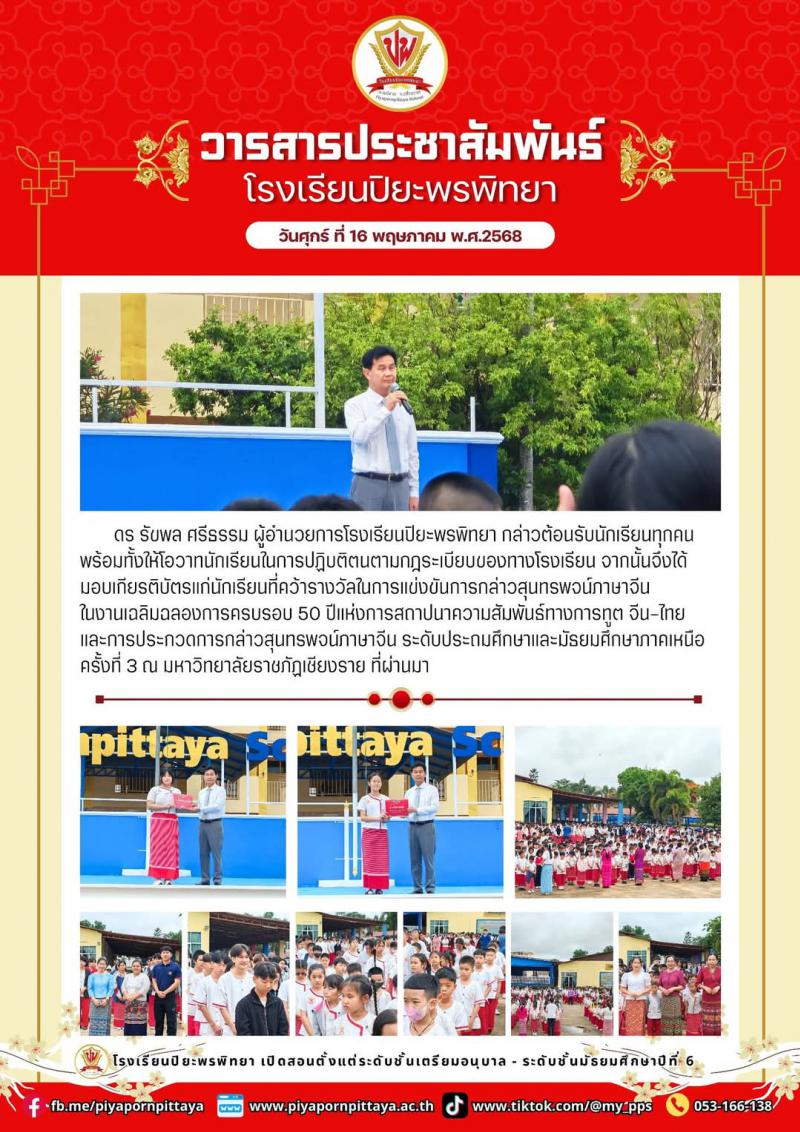 ตัวแทนนักเรียนโรงเรียนปิยะพรพิทยาเข้าร่วมการประชุมชี้แจงโครงการเสริมพลัง สร้างความรู้ และการสื่อสาร ..